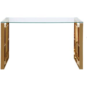 This console table provides you with spacious storage. You can have a large tabletop for your plants, vase, and photo frames. Imagine this modern stylish Hallway table in your home—where is it? In the living room as an end table? By the door as an entrance table? It’s up to you. This modern rectangle display table is widely applied in your home as a perfect narrow hallway table for its spacious area. Its durable structure and beautiful texture are perfect as a sofa table for living room furniture, or even for your office, home & bedroom. Metro Lane Table Base Colour: Gold, Colour (Table Top): Clear