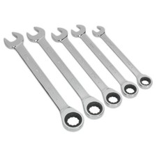 Sealey Siegen Combination Ratchet Spanner Set 5pc Features: Chrome Vanadium steel ratchet combination spanner set. 72-Tooth ratchet ring and gear set requiring only 5° rotation to pick up the next tooth. Supplied in storage/hanging pouch. Technical Details: • Chrome Vanadium steel ratchet combination spanner set. • 72-Tooth, ratchet ring and gear set requiring only 5° rotation to pick up the next tooth. • Sizes: 22, 24, 27, 30, 32mm. • Supplied in storage/hanging pouch. • Lifetime guarantee*. • Model No. S0985 • Model No. S0985 Additional Information: • Part of the Siegen by Sealey range of quality tools at competitive prices. • Chrome Vanadium steel ratchet combination spanner set. • 72-Tooth, ratchet ring and gear set requiring only 5° rotation to pick up the next tooth. • Sizes: 22, 24, 27, 30, 32mm. • Supplied in storage/hanging pouch. • Lifetime guarantee*.