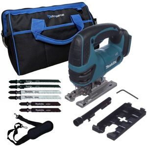 The Makita DJV180Z replaces the BJV180Z Tool-less blade change. Lithium-ion batteries have greater life spans than their Ni-MH or Ni-Cad counterparts giving 430% greater run time. Lithium-ion's 40% weight saving means 18 volt power can be obtained by a battery that weighs the same as a 12 volt Ni-MH battery. High comfort grips. LED job light that creates and easy to trace cutting line. Smooth and powerful cutting at the high stroke speed of 2,600spm. Includes Guide Rail Adapter - Enables saw to be used with 1.4/1.5/1.0m Guide Rails