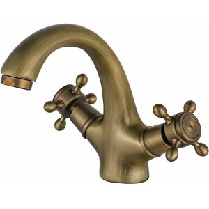 Retro Aged Brass Bathroom Faucet, Two Handle Sink Mixer, Nostalgia Brushed Bathroom Faucet, 14cm High High quality material: the bathroom sink Made of sturdy brass, nostalgic antique brushed surface, resistant to oxidation and rust, classic and durable. Premium Ceramic Valve: The sink faucet is made of premium ceramic cartridge, tested 500,000 times, prevent losses effectively. With 2 handles, you can easily adjust the temperature and flow rate. Honeycomb Sprayer: The water-saving honeycomb sprayer bathroom faucet, provides soft water jet, without splashes, save up to 30% of water.