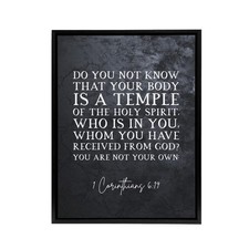 Welcome to Artery8, the home of fun, bright, and joyful gifting. In a nutshell, we love colour, we love art, and we love to gift, and we dont believe these things should cost the earth either! 1 Corinthians 6 19 Your is a Temple of the Holy Spirit Christian Bible Verse Quote Scripture Typography comes to life as a Framed Canvas print crafted for ready-to-hang display. This Framed Canvas print elevates your home with artful detail and vibrant colour. Versatile and ready to hang, it suits living rooms, bedrooms, offices, or creative studios. A stylish choice that adds personality and visual interest to your walls. Inspirational scripture artwork print, meaningful decor for home or prayer spaces. Artery8 Corinthians 6 19 Body Temple Bible Quote Framed Canvas Wall Art Print in Grey Size: W18" x H24"
