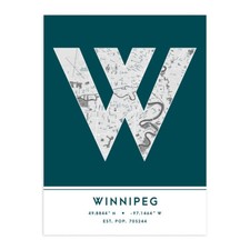 Wee Blue Coo Wall Art Print Winnipeg Canada City Map Modern Typography Stylish Letter Framed Word Navy W12 inch x H16 inch
