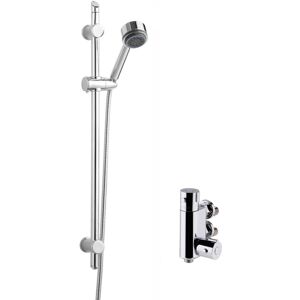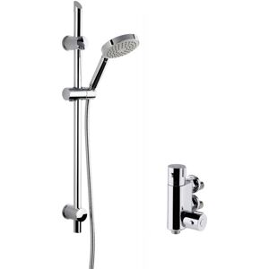 Contemporary Round Vertical Thermostatic Shower Bar Valve (1 Outlet) - Chrome - Balterley Combining high quality manufacturing and materials, this vertical thermostatic bar shower valve will be a welcomed addition to any bathroom. In a chrome finish to complement a range of bathroom designs. This bar valve is manufactured from brass and ABS to be a reliable fixture in your bathroom. This valve has thermostatic control. Product Highlights Contemporary vertical thermostatic bar shower valve Chrome finish Thermostatic control Slimline valve Manufactured from brass and ABS Round handles 1 Outlet valve