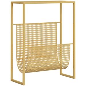 This practical magazine rack is designed to help you to store your favourite magazines in style and within reach. Made of steel, this book organiser is exceedingly durable and stable for long service life. The book display provides enough space for your favourite books, and the tabletop can place your room decorations. Additionally, you can place the display rack in your office, living room or bedroom. Colour: Gold Material: Steel Overall dimensions: 35 x 15 x 45 cm (L x W x H) SKU: 331669 EU responsible party Haba Trading B.V. Mary Kingsleystraat 1 5928SK Venlo The Netherlands Compliance-safety@vidaxl.com