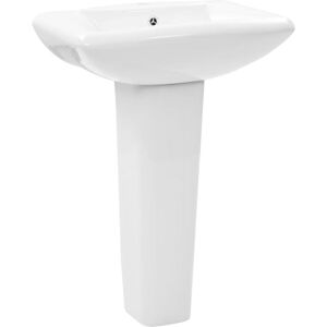 This freestanding ceramic washbasin with a full pedestal will be a great addition to any bathroom, washroom or cloakroom. The glazed ceramic and modern and elegant design will suit any decor. A faucet hole with a diameter of 35 mm is included. The sink is easy to clean. Please note that the tap and