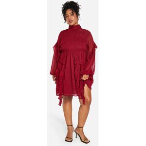 Flattering wrap front design with elegant V-neckline for a feminine silhouette Delicate crinkle chiffon fabric creates beautiful texture and movement Romantic sheer long sleeves with tie cuff detail for added drama Playful tiered ruffle skirt with flirty skater shape Inclusive plus size fit designed to celebrate your curves This enchanting wrap dress combines sophistication with playful charm, perfect for those special occasions when you want to make an impression. The flattering V-neckline frames your dcolletage beautifully, while the tiered ruffle skirt creates a captivating silhouette that moves gracefully with every step. Style with statement jewellery and sleek knee-high boots for an edgy contemporary look as shown, or transform for formal events with strappy heels and a clutch bag. The versatile design transitions effortlessly from day to evening - pair with a tailored blazer for graduation ceremonies or add sparkling accessories for wedding guest attire. The delicate chiffon fabric and feminine details ensure you'll stand out at any celebration whilst feeling comfortable and confident.