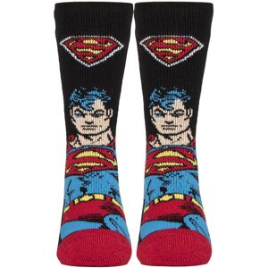 Does your little boy need some warmer socks but wants to show them off with one of their favourite comic book characters? Then these DC Comics Superman Thermal Socks are the perfect gift for them! Now your little superhero can be warm and cosy while he's out saving the world. These socks are soft and thick, with a Heatweaver lining that helps them retain heat and keep feet warm all day long. They come with great colourful designs on them of the Man of Steel: Superman! So you boy can be just like the world's greatest superhero! Thick, chunky with a massive tog rating of 2.34, they are over 7X warmer than the basic cotton sock (0.33 tog)! This is as they have been made from a specially developed thermal yarn, which works to provide high performance insulation against the cold. As well as this, the Heat Holders Loops produce a unique pile of cushioning which holds in even more warm air, these extreme socks have an expert brushing process, causing the inside to be not only sensationally soft, but also helps to maximise the amount of warm air held inside each sock for total warmth and all day comfort. These socks come in 1 pair per pack with Superman designs on them and are made from: 91% Acrylic, 5% Nylon, 3% Polyester, 1% Elastane. They are available in 2 kids sizes: 9-12 UK (27-30 EUR, 10-1 US) & 12.5-3.5 UK (30-36 EUR, 13-4 US) and are Machine Washable..
