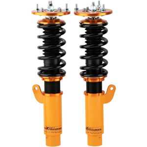 Applications For BMW 3 E46 4-door sedan 02/1998-04/2005 320i 325i 328i 330i 318d 320d 330d For BMW 3 E46 2-door Convertible 04/2000-12/2007 323ci 325ci 330ci 320cd 330cd For BMW 3 E46 2-door Coupe 02/1999-12/2006 320ci 325ci 330ci 320cd 330cd For BMW 3 E46 Touring 5-door Wagon/Estate 10/1999-05/2005 316i 323i 325i 328i 330i 318d 320d 330d Note: not for Xi/xd 4 wheel drive not for M3 model either Specifications Quantity: coilovers for 2 front and 2 rear & a pair wrench for height adjustment Type: Lowering Kit Top mounts: front pillow ball top mounts with camber plate rear pillow ball top mounts Damping: 24 levels rebound damping adjustable Spring rate: front 8kg/mm Spring rate: rear 7kg/mm Adjustable height: Yes lowering 1'' to 3'' Shock type: Twin tube Spring Preload: 7-10 mm Color: gold Adjustable pre-load spring tension. Advise professional installation. Warranty: 2 year warranty for any manufacturing defect Feature 1. Quickly Install: Preload parameter is provided to save your 3-4