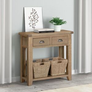 This Dark Brown 2 Drawer 2 Baskets Console table combines natural oak, pine, and MDF materials with an oak veneer finish treated with dark wax. It provides two drawers with metal handles and wooden runners, supporting 20 kg each, along with one sturdy shelf that hold up to 45 kg. Storage baskets are included to enhance organization. Assembly is required with accessories and safety wall strap provided, requiring two people. Key Product Measurements and Details: Dimensions (H x W x D): 85 cm x 100 cm x 35 cm Weight: 17 kg Colour: Dark Brown Material: Oak, Pine, MDF with Oak Veneer Finish: Dark Wax Drawers Included: Yes, 2 Drawer Dimensions: 11.6 x 30.7 x 26.3 cm Max Load per Drawer: 20 kg Handles: Metal Drawer Runner: Wooden Shelves Included: Yes, 1 Max Shelf Weight: 45 kg Storage Baskets Included: Yes Assembly Required: Yes Suggested Assembly People: 2 Tools Required: Screwdriver Fixing Kit Included: Yes Safety Wall Strap Included: Yes Country of Origin: Vietnam