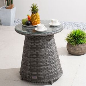 This 55cm diameter aluminium table is ideal for balconies, patios or cozy garden corners. Made with weatherproof PE rattan and a rust-free aluminium frame, it's built to handle British rain and sunshine all year round. Special Features: All-Weather PE Rattan - Waterproof, sunproof & mildew-resistant Rust-Free Aluminium Frame - Sturdy yet lightweight 5mm Tempered Glass Top - Easy-clean & heat-resistant Extra-Wide Seating - Enhanced comfort with high-resilience foam Minimal Care Needed - Just wipe clean, no special treatments Dimension: Table Dimension---D 55 x H 60 cm Weight---6.2kg Color---Grey