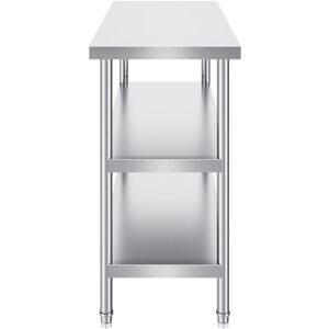 Mophorn Stainless Steel Kitchen Prep Table 18x48 Inch Work Table for Efficient Food Preparation and Storage The Mophorn Stainless Steel Kitchen Prep Table offers a spacious 18x48 inch work surface, perfect for a wide range of kitchen tasks. Made from high-quality stainless steel, this sturdy and reliable table is built to withstand heavy-duty use in both commercial and home kitchens. Whether you’re chopping vegetables, preparing meats, or organizing your kitchen tools, this table provides ample room and durability for all your needs. Its smooth, rust-resistant surface makes cleaning and maintenance a breeze, ensuring a hygienic space for all your food prep activities. Generous 18x48 inch size to accommodate various kitchen tasks Premium stainless steel construction for lasting durability Rust and corrosion-resistant for a long-lasting, clean surface Versatile for use in professional kitchens, home cooking, or restaurants Easy to assemble and maintain for a hassle-free experience Key