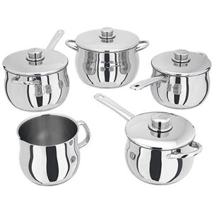 The Stellar 1000 Classic 5 Piece Saucepan Set boasts a timeless domus shape and finish, making it suitable for both modern and traditional kitchens. Constructed from high-quality mirror-polished 18/10 stainless steel, this 5 Piece Saucepan Set is designed for everyday use, providing durability and ideal for serving from the hob to the table. Its thick 'hot forged' base ensures even heat distribution without internal hot spots, allowing for efficient and consistent cooking on any hob type, including induction. Oven safe up to 210°C and dishwasher compatibility, this pan offers convenience and versatility. Dimensions 14cm MILKPAN - External Measurements: 9.5(H) x 15(W) x 30.5(L) cm. Capacity: 900ml. 16cm SAUCEPAN - External Measurements: 13(H) x 17(W) x 32.5(L) cm. Capacity: 1.3L 18cm SAUCEPAN - External Measurements: 14(H) x 19(W) x 35(L) cm. Capacity: 1.7L. 20cm SAUCEPAN - External Measurements: 15(H) x 21(W) x 40(L) cm. Capacity: 2L. 24cm FRYPAN - External Measurements: 8(H) x 25(W) x 44L) cm. Stellar lifetime pan guarantee. Please Note: Due to the re-branding of Stellar 1000 Range to Stellar Classic, packaging may vary.