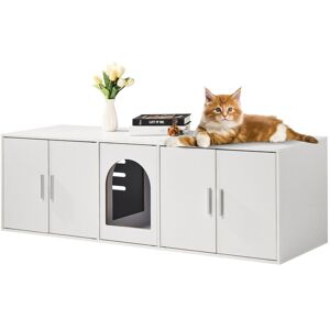 Features & Details A Private Haven for Your Cat: Give your cat a private space while elevating your home's style with VEVOR cat box enclosure furniture. Its elegant design blends with your home decor, keeping your space tidy and organized, all while giving your cat a cozy retreat, seamlessly hiding your cat's litter box while reducing unpleasant odors. Spacious Storage: With 4 upper shelves, a wide litter box top and 2 doors, VEVOR 33.5"L x 19.3"W x 72.3"H hidden litter box furniture provides ample room for most of litter boxes, cat food, toys, magazines, photo frames, etc. Suitable for small, medium, or large cats, it ensures a comfortable space for leisure and potty time. Sturdy and Durable: The cat litter box furniture hidden is crafted from high-density MDF board and features sturdy metal shelves frame, ensuring exceptional durability and stability. Its solid construction allows you to safely place photo frames, decorations, or cat food storage containers on top, supporting up to