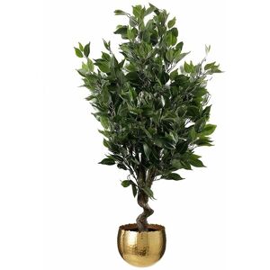 Comes with the decorative metal planter shown. Products are separate and can be used together or on their own. This artificial tree is suitable for both residential and commercial applications. 110cm (3ft +) tall. Stems are wired and can be shaped to your requirements. It comes potted in a plain plastic pot and is ready to display . You can easily put this inside a larger planter if you wish. Plastic pot measures 15cm (d) x 13cm (h) approx. This product is designed for indoor use only.