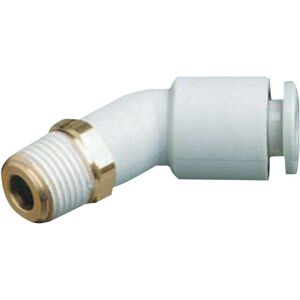 SMC: KQ2K16-03AS 45 Degree Male Elbow 16 to R3/8 KQ2K Series 45 Elbow fitting with external hexagon head, 360 pivotable. To pipe at a 45 angle on a female thread. Colour: white. MPN: KQ2K16-03AS EAN: KQ2K16-03AS 45 Degree Male Elbow 16 to R3/8 Attributes: Connection Type: Tube x BSPT MFR Part No.: KQ2K16-03AS Material: Plastic Maximum Operating Temperature: +60°C Minimum Operating Temperature: -5°C Operating Temperature Range: -5 to 60° Thread Sizes Male: 3/8in Thread Type: Male Tube Size: 16mm Weight Each: 39.2g