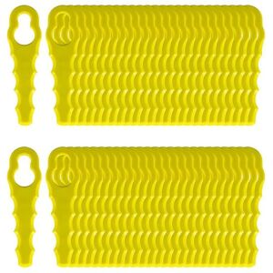 Length:6.7cm Width:1.2cm Height:0.7cm weight:0.25kg Material:Plastic color:yellow Description Material: Plastic,Length:67mm Good for grass and thin brush:not for young trees or other hard materials. For best use, avoid using this attachment for edging, working with bricks, chains or Suitable for:RYOBI RAC155 RAC157 Trimmer ABOUT REPLACEMENT BLADES:Made of PA6 (Nylon), put the blades in water at night before using, they will last longer. Quantity: 50 Replacement Blades for RAC158, perfect replacement blades for the original blades. Due to manual measurement, please allow a measurement deviation of 1-3 cm. Due to different displays and lighting effects, the actual color of the item may be slightly different from the color shown on the picture. Thank you!