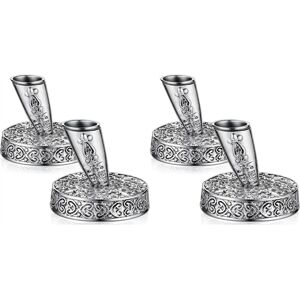 What you will receive: there are 4 pieces vintage pen holders in the package, they are exquisitely designed and abundant in texture, which can attract people's attention no matter where they are; pen holders are durable and reliable, which will bring you a wonderful experience. Size and material: the size of the metal insert pen holder is 4.1 x 4.1 x 4 cm/ 1.6 x 1.6 x 1.57 inches, which is lightweight and does not take up too much space; The metal material gives the pen holder a solid and reliable structure, resistant to falling and not easy to deform. Suitable for: the fountain pen holder has an opening suitable for most pens and can be applied to store signature pens, metal pens and fountain pens, is a nice tool for study rooms, living rooms, offices, reception rooms, etc. Putting pen holder can give it a different retro atmosphere. Easy to clean: The base of the retro desk pen is easy to clean and can serve you for a long time; Although it has embossed lines, it is easy to maintain