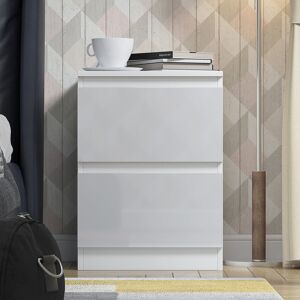 Derck 2 Drawer Bedside Cabinet - White Gloss Front Introducing the Derck 2 Drawer Bedside Cabinet, exquisitely designed in a chic white gloss finish. This bedside table not only enhances the style of your bedroom but also offers practical solutions with two 14cm deep drawers ideal for keeping all your essentials within reach. The robust, scratch-resistant surface ensures it remains pristine, making it a dependable and stylish addition to any contemporary space. Elegant Dual Finish: Glossy white drawer fronts paired with a matte frame for a stylish contrast. No Handle Design: Embrace a sleek, minimalist aesthetic with handle-free drawers, enhancing the modern appeal of your space while offering a clean, uncluttered look that complements any decor style. Spacious Storage Drawers: Two drawers with a depth of 14 cm, providing substantial space for storage. Durable and Scratch Resistant: Built to resist everyday wear and tear, keeping its appearance over time. Contemporary Design: Elevate your space with a modern aesthetic, featuring clean lines, a minimalist style, and a forward-thinking design that seamlessly blends form and function for a stylish, up-to-date look. Easy Care Instructions: Requires minimal maintenance, simply wipe clean with a soft cloth and avoid harsh chemicals. Flat Pack: Easy DIY Assembly - Instructions and fittings provided Height: 55 cm Width: 40 cm Depth: 40cm Weight: 15kg Metro Lane