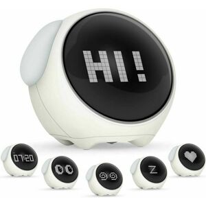 About this item Cute emoticon digital alarm clock: can be used as a clock, alarm clock and night light. The alarm clock has different expressions in different scenes. Both ears are night lights, which can be gradually dimmed and turned on by voice command, long-term battery life lithium battery, and can be charged via USB cable Snooze function: after the alarm sounds, shake the alarm clock to enter snooze mode, and the snooze expression lights up, and you can get 5 minutes of snooze time. Unlimited cycle change, press the top button to turn off the day's alarm Time and temperature display: You can display the time and temperature on the screen. You can set the time format (12/24H or AM/PM) and temperature according to your needs. Night light: The digital alarm clock is also a night light, which can accompany you to sleep. Which will not cause energy waste. Kids Gift: This kids alarm clock can be used as an alarm clock, night light, bedroom clock, indoor lighting and can be used as a