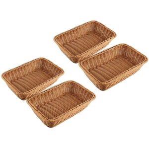Place this lightweight rectangular basket on your dining table or kitchen counter to focus on your outings. Fill it with mail, keys, and papers! More durable baskets are constructed of hand-woven plastic, giving no hard jagged edges, reinforced at the rim and base with internal ribs. Made of safe imitation rattan, bread basket is healthy for storing food. When you use the baskets, its smooth woven belt could protect your hand from injury MULTIPURPOSE: Home decor organizer, creative storage, basket for fruits, vegetables, bread, food service, storage, or display. Can also be used as a catch-all dish for your keys, wallet, cell phone, red wine and more. USAGE SCENARIOS: Perfect for use in , office, restaurant, fruit store and more. Color: brown material: plastic Package Contents: 4 x Woven Basket Only the above package content, other products are not included. Note: Light shooting and different displays may cause the color of the item in a little different from the real thing. The