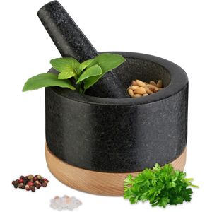 Want totry your hand at making your own sauces, pestos and pastes? Then you’ll needthis mortar and pestle! The sturdy granite herb crusher does exactly that:crush herbs and spices for you to use in your cooking. The inner surface of themortar and the top end of the pestle are roughened for better crushing results.The polished surface means the spice grinder isn’t just functional but stylishtoo. It’s also great for creating your very own homemade balms and medicine. Please note:Granite is a natural material. The mortar may vary in colour, structure andgrain size and slightly deviate from the product images. Before you start usingthis product, please rinse it with water and, if necessary, grind coarse saltto remove any bits caused by the production process. Pestleand mortar at a glance - Mortar dimensions: approx. 12 x 8,5 cm (WxH) - Pestle dimensions: approx. 4 x 14 cm (WxH) - Volume app. 300 ml - Weight: approx. 1.9 kg - Material: granite - Colour: black, grey Granitemortar for the
