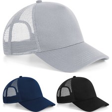 96% Polyester, 4% Elastane. Fabric: Micro Knit. Design: Plain. 5 Panel Design, 6 Row Stitching, Button at Top, Mesh Panels, Pre-Curved Peak, Structured Front Panel, Tearaway Label. Fastening: Snapback. Sustainability: REACH, SAI Certified. Beechfield Men's Microknit Snapback Trucker Cap in Light Grey