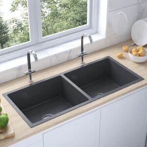 Enjoy the advantage of this kitchen sink with clean contemporary designs. The two bowls in silky smooth satin finish will ooze class and sophistication, which will fit any kitchen decor! Combing the best in function and design, this sink is crafted of high-graded handmade stainless steel in anti-condensation paint, mould proof, lead free and corrosion resistant. It is sound proofing with the sound-reduction pads. Additionally, the bowl with a unique X-flume design facilitates quick flow, preventing standing water in the bottom of the basin. The sink can be fitted as undermount, flush mount and drop in and you can have it in any way you prefer. Belfry Kitchen Finish: Black