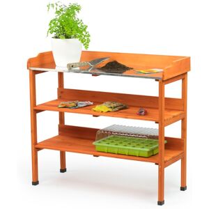 Key Features Reliable Plant Table - KCT 3 Tier Potting Bench , a sturdy wooden work bench for use around the garden Multiple Levels - With 3 tiers, the workbench allows for a flat working surface and 2 lower shelves that can be used to hold supplies, excess pots, tools and plant seeds Secure Work Top - Galvanised Steel top tray with matte finish, ideal for potting work. Provides space to work and secure retaining sides to stop soil and dirt falling off Lightweight Planting Station - The Potting Table is light and compact and can be placed easily around the garden, inside sheds and greenhouses. Rubber feet ensure the wood is protected from the ground. Dimensions (L x W x H): 90cm x 37cm x 80cm Work Level Height : 72.8cm. Assembly is Required. Instructions Included The 3 Tier Garden Potting Bench is a compact and lightweight work station for your gardening needs. The Bench is constructed of wood and features two storage shelves and an upper potting table. The unit is raised off the