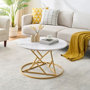 Transform your living space with our elegant round coffee table that combines the beauty of faux marble with modern design. Designed with a stylish faux marble top and sturdy metal legs, this round table combines elegance and functionality. The unique geometric base not only provides stability but also adds a contemporary touch. At 80cm wide and 45cm tall, it fits perfectly in any living room setting, offering ample space for decor, snacks, or beverages. Easy to clean and maintain, this white circular coffee table is the perfect centerpiece for your cozy gatherings and stylish décor.Ideal for any setting—from relaxing in the living room to entertaining guests at a cafe—this multifunctional coffee table adapts effortlessly to your lifestyle. Fairmont Park Table Base Colour: Silver