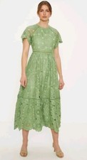 Oasis Womens Petite Floral Lace Detail Square Neck Midi Dress - Pink - Size 14 Uk