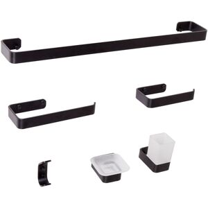 Metal Hardware Set in a Modern Style. Keep your bathroom organised and stylish with this modern hardware set. Made of high-quality aluminium in an elegant black colour, it’s both durable and simple to install. The set comprises 6 pieces: a towel bar, a hook and ring, as well as a holder for the toilet paper, a soap dish and a tumbler. Additionally, a glass soap dish and a tumbler included in the set complete the look, making your bathroom chic and cohesive. Details: Product Type: Bathroom Hardware Set Style: Modern General Color: Black Material Type: Metal Main Material: Aluminium Additional Material: Glass Finish: Matt Dimensions: Depth: 8 cm Width: 62 cm Height: 4 cm Overall Dimensions: 62x8x4 Weight: 1.7 kg Weight Capacity: 10 kg Offer Includes: 1 x Towel Bar, 1 x Towel Ring, 1 x Towel Hook, 1 x Toilet Roll Holder, 1 x Soap Dish Holder, 1 x Tumbler Holder, 1 x Soap Dish, 1 x Tumbler Key Features: Modern Design, Blends Well with Any Decor, High-Quality Materials, Unique Handmade