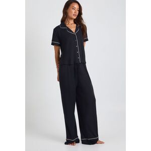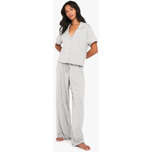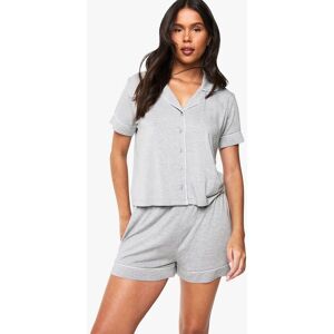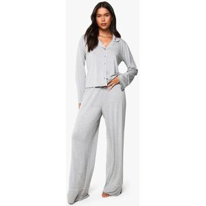 Boohoo Womens Premium Modal Piping Detail Long Sleeve Shirt & Trousers Pyjama Set - Grey - Size 14 Uk