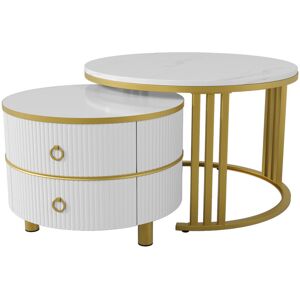 The double round coffee tables can be used together to save space or separately as two coffee tables. Can be placed in front of or next to the sofa, study, balcony, etc. The unique combination of brown tempered glass and high-gloss table top is chic and elegant. Painted metal legs and textured drawer fronts reflect the owner's taste and style, adding value and style. Thickened MDF and thickened metal legs also ensure the stability of the table. You can use it for a long time without hesitation. The easily wipeable surface makes your everyday life easier. Canora Grey Table Top Colour: Black/White Marble, Table Base Colour: Black