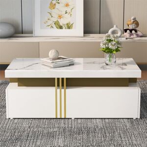 What sets this coffee table apart is its ingenious dual-drawer design, offering an abundance of storage space for a plethora of items. Whether it's notebooks, journals, books, or remote controls, these spacious drawers provide a sanctuary for your essentials, keeping them organized and within reach at all times. Say goodbye to clutter and hello to streamlined elegance with this practical yet stylish storage solution. Canora Grey Colour: White/Gold