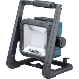 Corded and cordless LED worklight compatible with both 14.4V and 18V Makita Li-ion batteries. The new Makita DML805 LED work-light will run on 110v power or 14.4v and18v Lithium-ion batteries from the Makita range. The twenty 0.5watt LED s provide a bright and even light and there is a full beam and low level setting on the simple push button control. The light unit is mounted in a rugged moulded carry cradle with flat base and top handle that can serve as a hanging bar. A simple rotating knob releases the angle setting which can spin through 360 . Ideal for site operations this work-light features Makita Extreme Protection Technology, XPT, against water and dust ingress. It has three tripod mounting options as standard. Using a 4.0Ah 18v Makita Li-ion battery the DML805 LED work-light has a continuous run time in high setting of a useful 6.5 hours. Features and Benefits: 2-mode operation: delivers 750 lumens on High mode or 450 lumens on Low mode Up to 8.5 hours of continuous