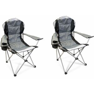 Sit back, relax and enjoy the great outdoors in one of our luxury PADDED folding camping chairs. Designed with luxury comfort in mind our chairs feature a high back rest for superior support to reduce aches and pains if your seated for long periods of time. Meanwhile the padded panels, with breathable mesh ‘target points’, aim to reduce clamminess and increase comfort when seated. A lightweight tubular steel frame provides ultimate strength whilst its feet are designed to adapt to uneven ground for stability. Each chair is fitted with a cup holder to hold a refreshing beverage by you side and comes complete with a drawstring shoulder bag to easily carry the chair when folded away. QTY:- 1 Chair (Unless other qty selected from drop down menu) Seat Size: 60 x 55cm, width with arms 90cm Seat Height: 44cm Back Height: 110cm Weight capacity: 120kg Weight of Chair: 3.2kg (All measurements are approximate and taken
