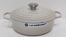 The iconic Le Creuset Signature Meringue Cast Iron 26cm Round Casserole is perfectly designed for stews, casseroles, roasts, soups and baking. Make mouth-watering and memorable meals that are full of intense flavour in this one-stop pot. ADVANCED SAND INTERIOR ENAMEL - durable, easy to clean and specifically engineered to resist staining with a higher resistance to wear and tear. Significantly improves durability and performance, being 35-40% more resistant to thermal shock and 16% more resistant mechanical shock (chipping from utensils). It is also more resistant to acid attack and 24% more resistant to enamel erosion. There is less absorption of food colours and it is more durable against repeated dishwasher use as well as being 45% easier to clean. LARGE HANDLES - easier to grip and lift when full, even when wearing oven gloves or mitts. ERGONOMIC STAINLESS STEEL KNOB - stylish and durable brushed stainless steel finish. Easy, comfortable and natural grip, suitable for all temperatures. ENGINEERED LID - tight fitting with built in stabilisers for enhanced moisture lock in and flavour, during cooking. Handcrafted at the Le Creuset foundry in northern France since 1925, Le Creuset casseroles are made from premium quality cast iron ensuring each product is beautifully finished and long lasting. A true kitchen essential, the cast iron round casserole is not only perfect for making casseroles, stews and one pot roasts, but is versatile enough for baking cakes and bread. Le Creuset cast iron cookware also works efficiently at low to medium cooking temperatures and retains heat effectively, ensuring food stays warm for longer. Le Creuset cast iron casseroles are suitable for all hob types (including ceramic, halogen, induction, gas and oil or wood) and are also oven and grill safe. Dishwasher safe, although hand washing is recommended. The Le Creuset 26cm round cast iron casserole is ideal for 6 people and has a capacity of 5.3L. Dimensions: L35.3cm x W27.4cm x H17.2 cm. Weight: 5.14kg. This Le Creuset Signature Meringue Cast Iron 26cm Round Casserole is supplied with a manufacturer's lifetime guarantee.