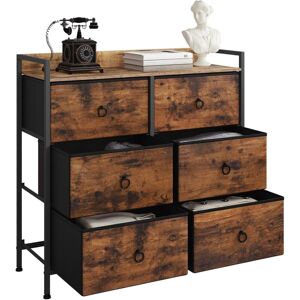 𝐒𝐀𝐘 𝐁𝐘𝐄 𝐓𝐎 𝐂𝐋𝐔𝐓𝐓𝐄𝐑: The storage chest of 6 drawers, with each measuring 37x28x20cm to hold 10-15 T-shirts or more than 10 pairs of socks, helps you sort and organise. Plus, the top of the storage cabinet can hold 20kg to display vases, potted plants, etc. PREMIUM MATERIALS: The storage cabinet is constructed from metal frame, metal cross braces, E1 grade engineered wood shelf and fabric drawers, which are made of high-quality double-layer non-woven fabric, hard cardboard and MDF. The unit can hold up to 50kg in total and stand stably on the floor VINTAGE STYLE: The chest of drawers, which are removable and foldable, is not only a practical storage solution for your space, but also a perfect decoration. The classic colour black is combined with the vintage brown to add a vintage touch to your space and make your home special VERSATILE USE: Included with anti-tip devices and fitted with anti-slip, adjustable foot pads, the storage unit with storage drawers can be safely
