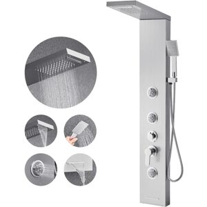 Elevate your bathroom experience with a touch of spa-like comfort and elegance. 0 Enhance your bathroom experience with our versatile shower panels, designed to bring both style and functionality to your space. Offering options like soothing rainfall and invigorating massage settings, these panels cater to a variety of preferences. Constructed with durable 304 stainless steel and brass materials, they are built to withstand wear and resist corrosion for long-lasting performance. Multi-functional 5-in-1 Shower Set Two Showerhead Settings Consistent and Reliable Water Flow Durable Stainless Steel Shower Panel Wide Compatibility Key Features 5-in-1 Shower Panel System: This multifunctional shower tower features rainfall and waterfall modes, three oversized body massage jets for full-body coverage, a bathtub spout, and a handheld showerhead. It caters to a variety of preferences, from refreshing rinses to soothing relaxation. Two Showerhead Options: Switch between a gentle rainfall or a
