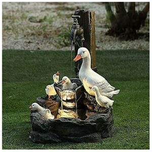 Duck size: 15 x 9 x 11 cm, squirrel size: 15 x 9 x 6 cm Small animal family statue: This statue is made of resin. The sturdy structure guarantees many years of service life. The old paint on the surface has been reinforced many times, and it is not easy to fade or corrode. Garden Decoration: The peaceful duck sculpture brings vitality and luck to your garden, which is very suitable for country and farmhouse decoration. Relax: After a long day, the gentle waterfall will definitely relax you and give you a sense of beauty, and our ornaments will make you imagine that you are relaxing in the garden while enjoying it. Animals Playing in the Water: This duck and squirrel family drinking fountain can bring joy and whimsy to your outdoor living space. The special feature is that the squirrel pours the water down two floors to the bottom of the log, where a charming little bird is waiting.