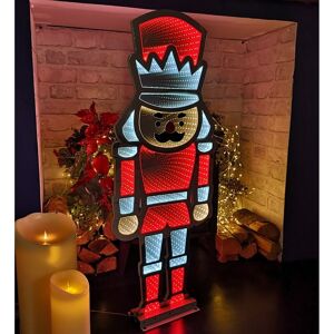 Transform your holiday decor with this stunning standing Elf infinity led light decoration. Infinity lights are a modern mirror effect using light to create an illusion of depth and a repeating light pattern. This simple yet mesmerising light up display is thin whilst creating this amazing 3D effect as you view of the elf from different angles. Create a festive display and a talking point for all your family and guests. Suitable to be placed on most flat surfaces such as a mantle piece, windowsill or by the front door to welcome visitors this year. Featuring an infinity mirror with Multi-Coloured LEDs, this creates the never ending reflection of the elf when lit up. The decoration sits on a wooden base and is mains operated with a generous 3m clear cable from product to plug. Quick and easy to set up, just simply peel the film off the mirror then attach the base and plug in. Suitable for indoor use only. Product Dimensions Height: 74cm Length: 32cm Stand: 20 x 7cm Cable Length 3m