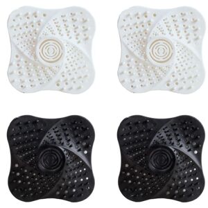 A set of 4 sink strainers, made of high-quality silicone, soft and not easy to deform, durable. The drainage holes are evenly distributed, the drainage speed is fast, and the sewer will not be blocked. Measures 14 × 14 cm and easily catches hair and food scraps when draining. Each of the four corners of the filter has a suction cup, which is firmly attached to the sink and is not easy to move. Works well on smooth tile or glass surfaces for kitchen sinks, showers, or bathtubs.