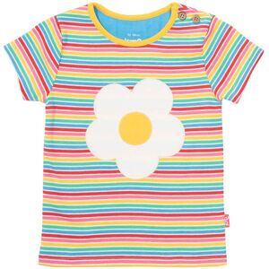 Our fun flower power t-shirt is the perfect companion for those days when you're looking for a dose of 'joie de vivre'! In our gorgeous rainbow yarn dyed stripe and flower appliqué, this t-shirt looks fabulous with our super versatile frill leggings or as a layer under sweatshirts, pinafores, and dungarees. Its stretchy rib nature gives a slimmer style, whilst also ensuring plenty of ‘give’ for a comfortable fit. Coconut button shoulder opening up to and including size 3 years.