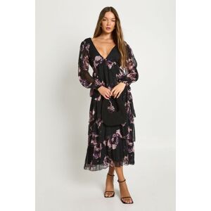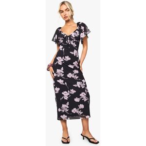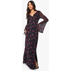 Flowing chiffon maxi dress with romantic floral pattern throughout Flattering plunge neckline to create a feminine silhouette Elegant side split detail for effortless movement Long sleeves with subtle flare at the cuffs Floor-sweeping length perfect for making a statement This enchanting floral chiffon maxi dress captures the essence of effortless style with its dreamy silhouette and delicate pattern. The plunging neckline frames your dcolletage beautifully, while the side split adds a touch of allure to your stride. Style with strappy sandals as seen on our model for casual daytime events, or customise for evening gatherings with statement jewellery and a clutch bag. The lightweight chiffon fabric creates graceful movement, making it ideal for garden parties, family celebrations or summer brunches. Layer with a denim jacket for cooler evenings or pair with a tailored blazer to transform this versatile piece for more formal occasions. This Boohoo dress embodies carefree femininity whilst ensuring you remain the centre of attention wherever your day takes you.