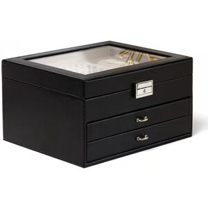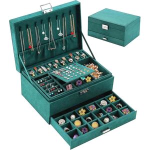 About this item Jewelry Storage Box: (17cmx14cmx13cm) 3-layer jewelry box, 2 sliding drawers, large capacity, very practical as a portable jewelry storage box for home travel. Good Quality Jewelry Box: It is made of high-quality PU leather and environmentally friendly flocking fabric, it is delicate and soft and protects your accessories from dust and scratches. The double-sided reinforced metal hinges can withstand multiple openings and closings, so you can use it with confidence. Versatile Women's Jewelry Organizer: Multi-layer storage of earrings, earrings, necklaces, bracelets, lipsticks, bracelets, anklets, watches and other jewelry. Removable dividers are appropriately divided for easy storage. Women Gifts: Lightweight, portable and practical jewelry boxes are the best gifts for marriage proposals, travel souvenirs, gifts and Christmas parties.