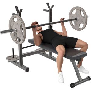 This weight bench with rack is ideal for any level user looking to build, ton, and maintain muscle mass. We feature a barbell rack, weight lifting bench and dip station, a great option to work out your entire body right at home. The steel tube construction makes the preacher curl bench sturdy and stable, while the standard plate weight racks allow you to keep the weight close at hand. Try this fitness bench by HOMCOM and start getting the body of your dreams.Features:More stable steel H-shaped base and extra-thick weight bench to form a stable structureThe barbell rack / dip station can be adjusted in 8 levels for different arm lengths and heightsFoldable design can save a lot of spaceAdds barbell storage bars to help store barbell pieces