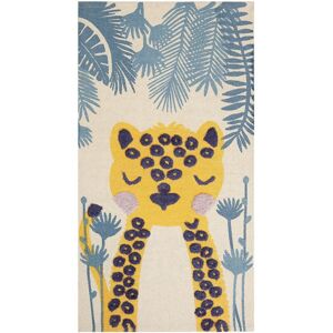 Handwoven Children Rug with Animal Print. Transform your child's room and decorate it with this cute rug. Neutral in colour with an embroidered bear, it will suit both girls and boys, from Boho style to modern interiors. It has been handcrafted, making it an eye-catching accessory that will serve for many years. This product will add a cosy touch to the interior, and will also serve as a place for games and other activities. Additionally, it is safe in usage thanks to the sprayed back, so the product won't slip. Details: Product Type: Kids Rug Style: Boho General Color: Beige, Black, Grey Material Type: Fabric Main Material: Cotton Additional Material: Fabric Material Composition: 95% Cotton Shape: Rectangular Anti-Slip Bottom: Yes GSM: 1150 g/m2 Pattern: For Kids Suitable for Underfloor Heating: No Weaving: Handwoven Dimensions: Pile Height: 2 cm Width: 80 cm Length: 150 cm Weight: 1.4 kg Offer Includes: 1 x Rug Key Features: Hand-Crafted with High Attention to Detail, Reduced