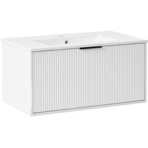 Modern Vanity Unit with Useful Drawers. This wall-mounted bathroom cabinet combines clean design with practical function. It features a durable grey melamine-coated MDF body and a contrasting black resin sink. With two spacious drawers, it offers storage for towels, toiletries and daily essentials while maintaining a sleek look. Ideal for modern, minimalist interiors where space-saving is key. Details: Product Type: Bathroom Vanity Style: Modern General Color: Grey, Black Material Type: Engineered Wood Main Material: MDF Additional Material: Resin Finish: Melamine Dimensions: Depth: 46 cm Width: 60 cm Height: 55 cm Basin Dimensions: 48x29 Weight: 37 kg Drawer Weight Capacity: 15 kg Offer Includes: 1 x Basin, 1 x Basin Cabinet, Not Included: Taps, Not Included: Basin Plug Key Features: Soft-Close Drawer Runners, Modern Design, High Quality, Easy Care and Durable Materials, Functional Deep Storage Space Assembly Information: Requires Installation and Assembly. 45-60 min. Additional