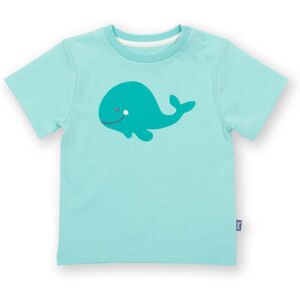 100% organic cotton Proud to be certified by Control Union to the Global Organic Textile Standard (GOTS) OEKO-TEX Standard 100 (Product class I) appliqué backing Whale appliqué design Aqua blue Single jersey Shoulder popper opening Short sleeved Round neck Made in Turkey Machine washable at 40 degrees, or at 30 degrees to be kinder to the planet