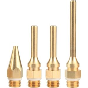 【specifications】2.0 x 34 mm, 2.0 x 50 mm, 3.0 x 50 mm, 2.0 x 70 mm, 4 different nozzle diameters meet different working requirements. 【High quality】The glue gun nozzle is made of copper, is robust and wear-resistant and has good thermal conductivity for a more even and faster adhesive flow. 【Waterproof design】All copper nozzles have built-in waterproof steel balls and high temperature resistant silicone seals to prevent glue leakage. 【Versatile】Nozzle for use with hot glue gun and glue stick for gluing toys, artificial flowers, plastic, wood, glass, metal, cables and fabrics. 【Good compatibility】The glue gun copper nozzle with thread diameter of 10.8mm is suitable for most glue guns on the market and is a great replacement for the original nozzle. Product Description 4 Pieces Copper Hot Glue Gun Nozzle Kit Four different sizes of glue nozzles are available, which have strong compatibility and easy use. Glue gun nozzles made of pure copper are durable for more years than aluminum
